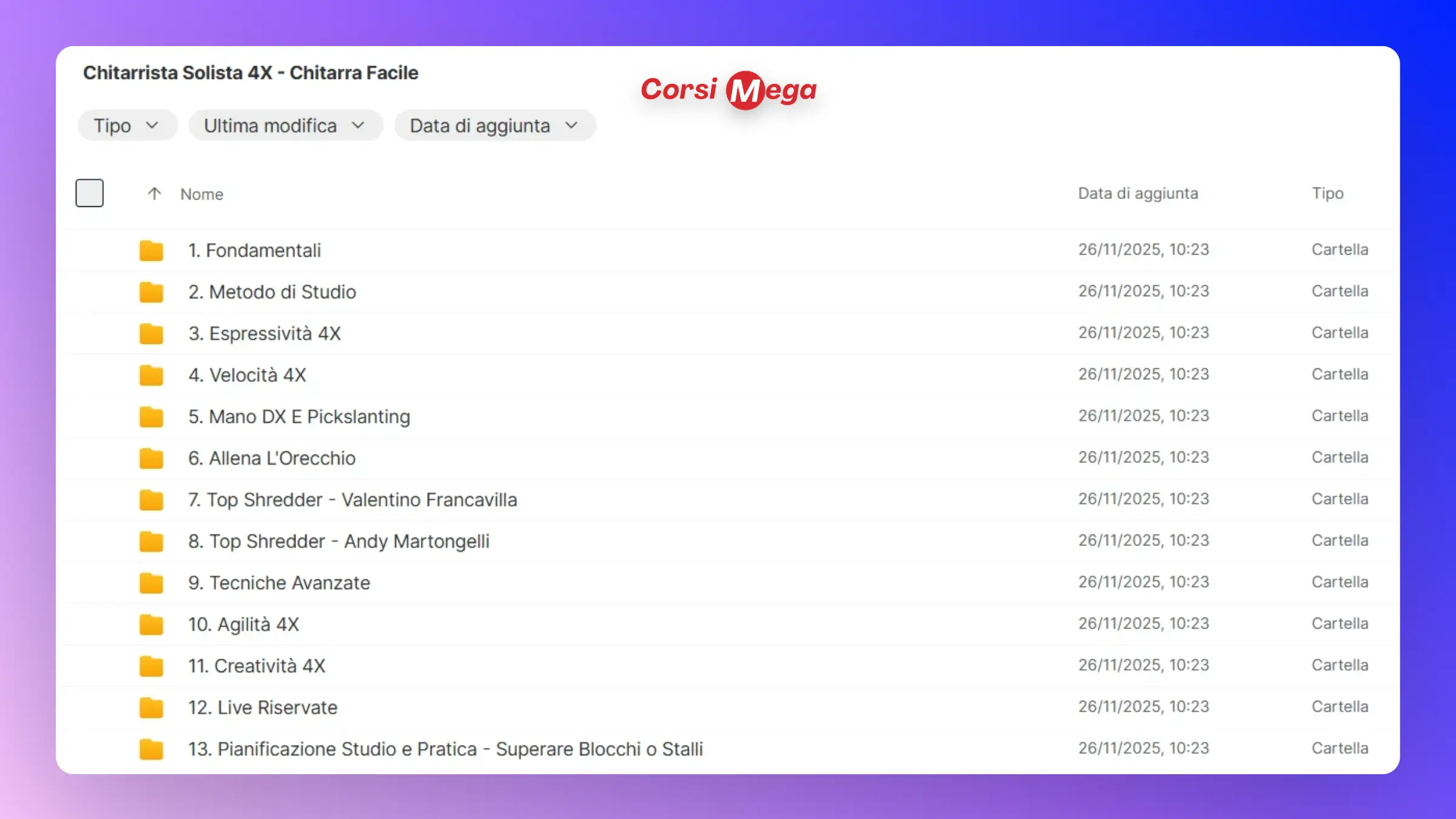 - 4 perCorsi principali che ricoprono i pilastri del chitarrista solista: Fondamentali, Creatività, Espressività e Velocità.