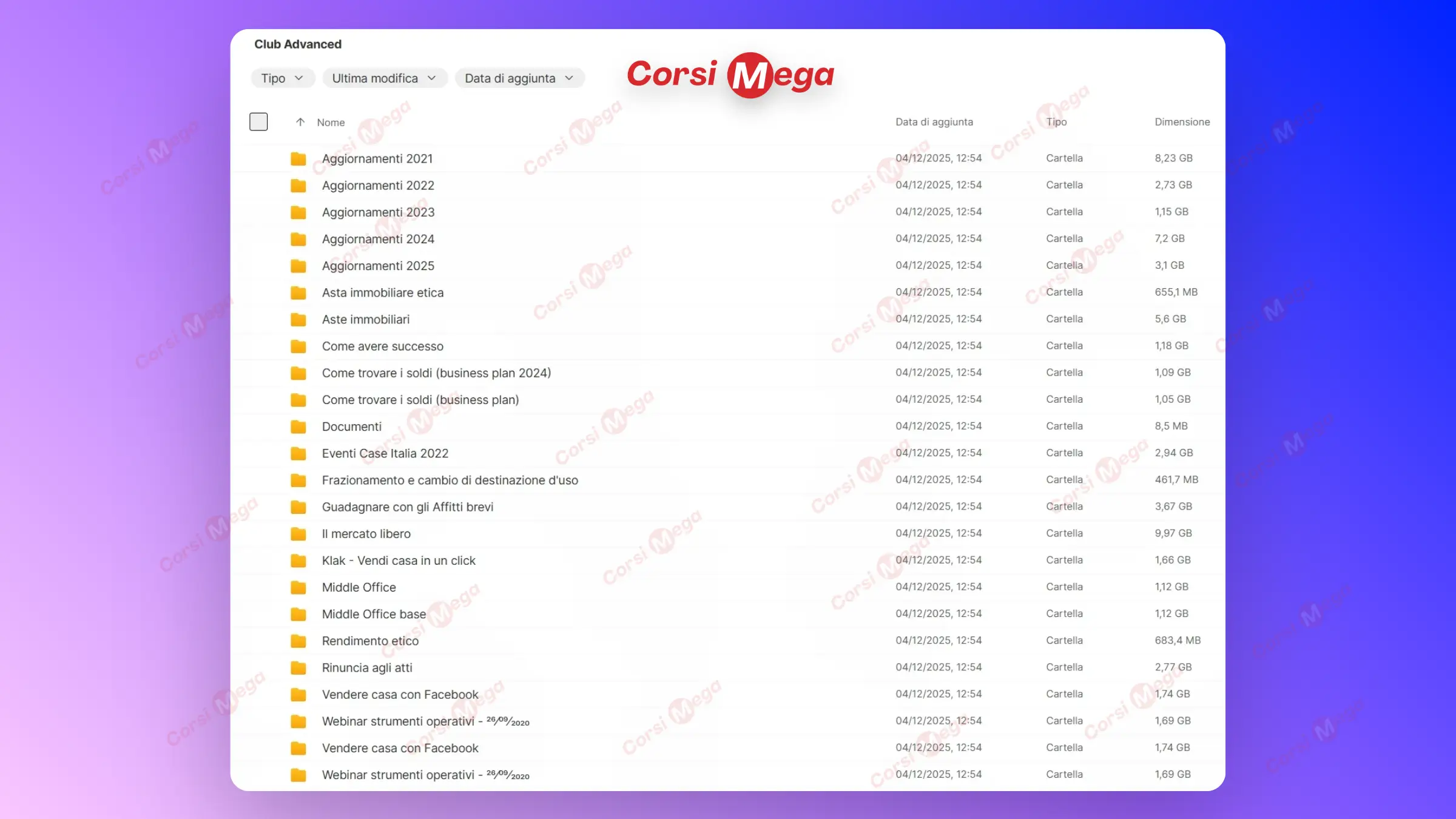 L’Accademia online ti offre una libreria completa di materiali formativi, con oltre 500 video divisi per argomento e catalogati in modo pratico. Troverai tutti i protocolli nel dettaglio in modo approfondito e tutte le risposte alle tue domande con un semplice click 24 ore su 24.  Il Club Advanced è nato per fornire un supporto concreto alle persone che seguono il corso Guadagnare con le Case e desiderano mettere in pratica ciò che hanno imparato. Diventando un membro del Club, avrai accesso a una formazione completa e professionale, che ti offrirà tutto ciò di cui hai bisogno per operare in questo mercato in modo etico e sostenibile.