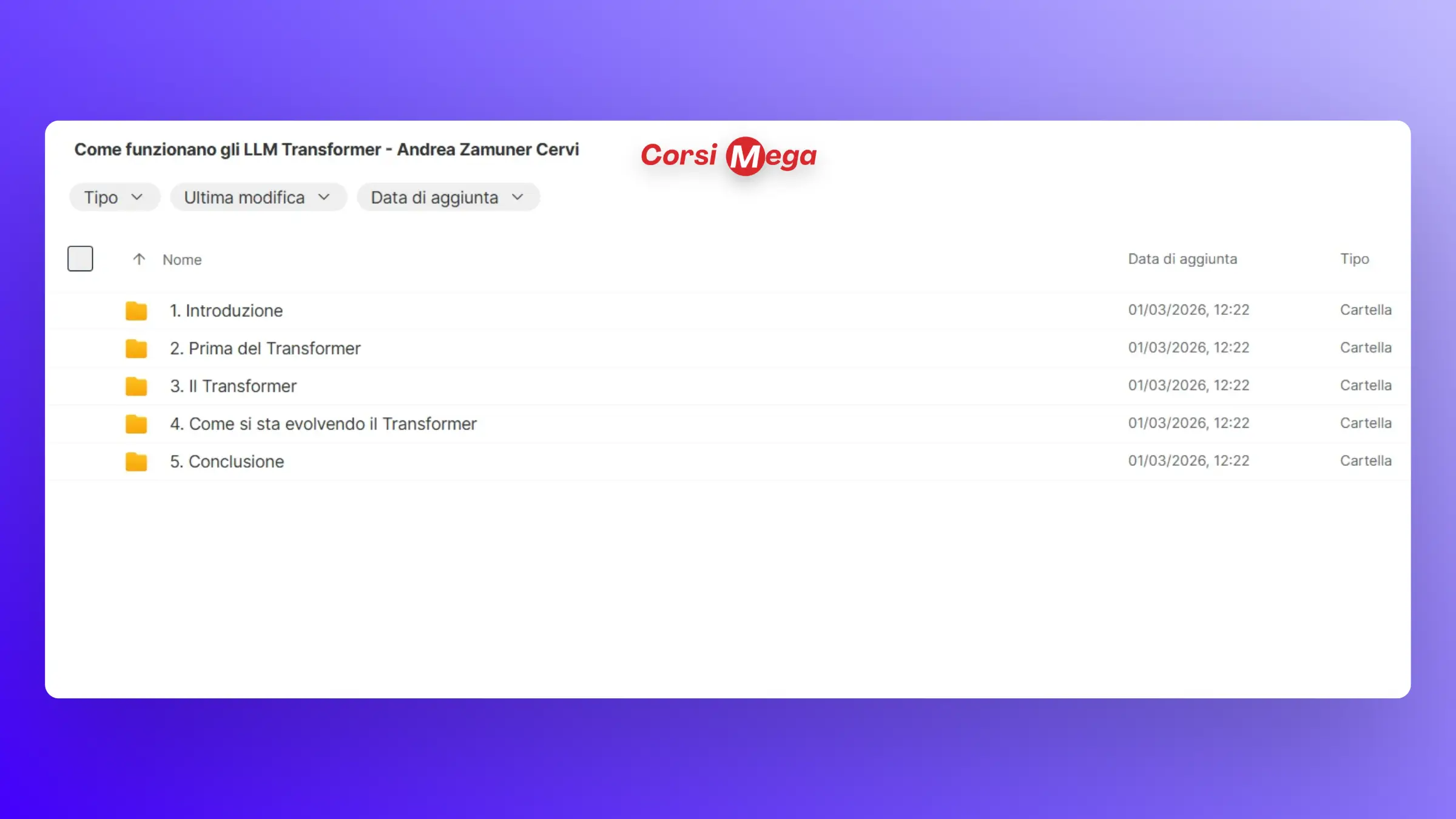 Perché questo corso? Perché i Large Language Model non sono più una curiosità per pochi esperti: sono una tecnologia fondamentale che sta ridefinendo interi settori. Comprendere i Transformer significa acquisire una chiave di lettura del presente e del futuro dell’AI. Questo corso ti permette di andare oltre la superficie e capire cosa accade davvero dietro le quinte degli strumenti che usi ogni giorno.