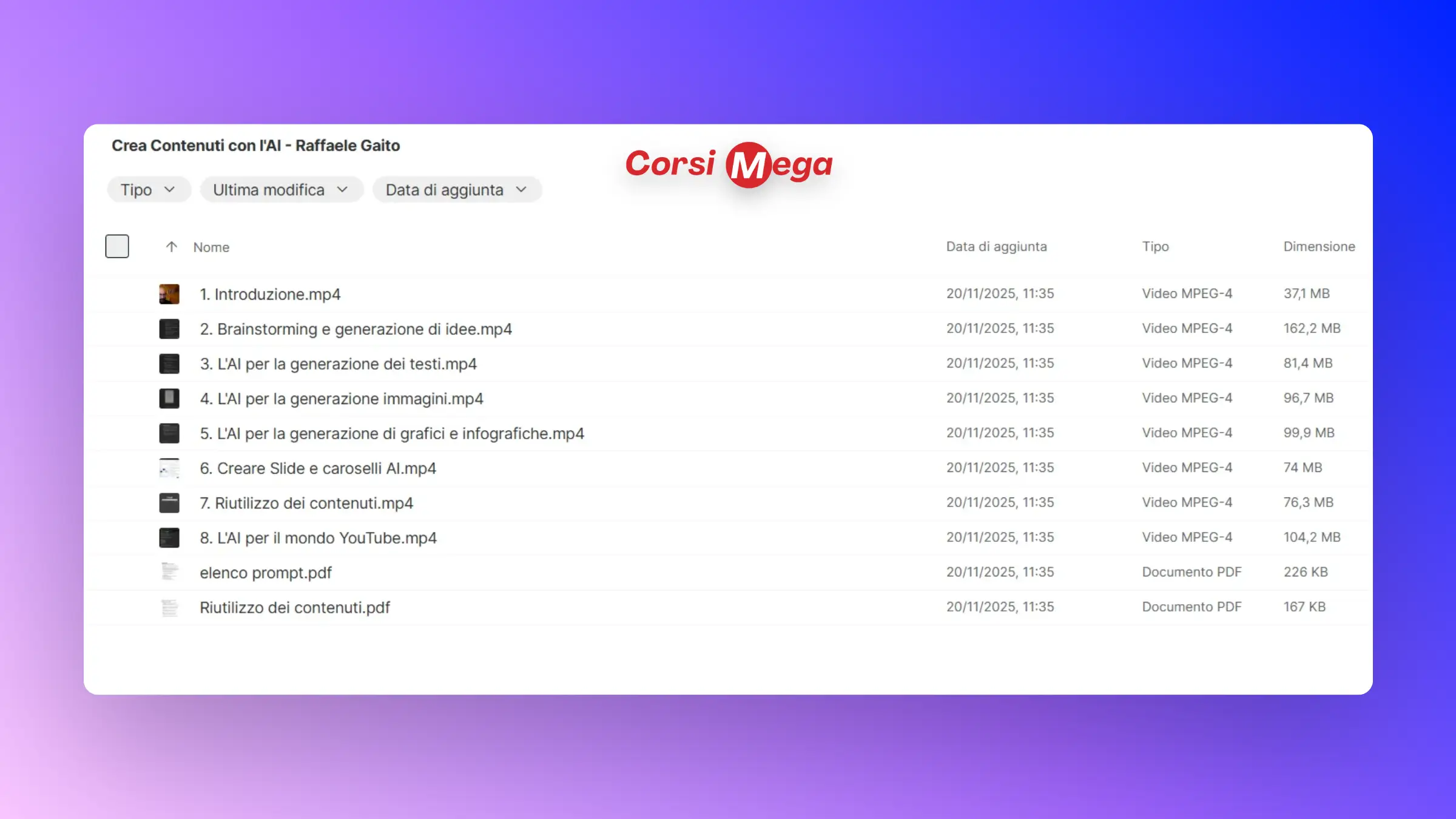 Acquistando questo prodotto otterrai accesso a tutti i video, file e contenuti digitali del corso 100% completi e aggiornati. Potrai scaricarli subito dopo il pagamento e consultarli offline sul tuo computer. Dai una sbirciata agli screenshot sopra per avere un’anteprima di quello che troverai all’interno del corso!
