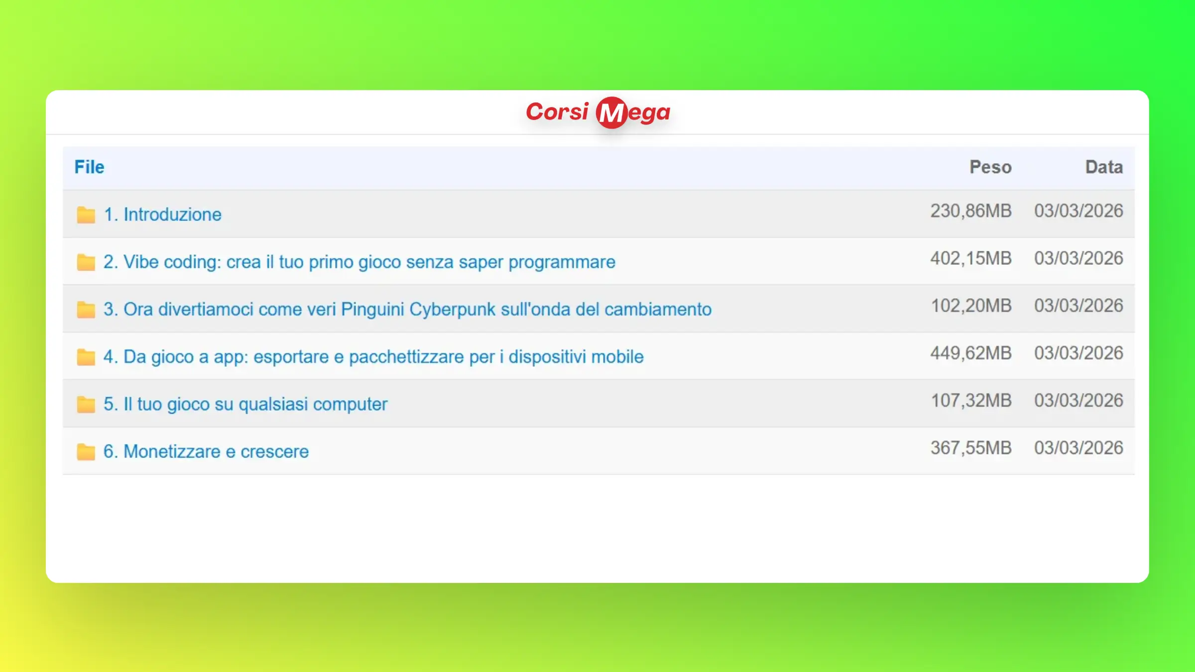 Acquistando questo prodotto otterrai accesso a tutti i video, file e contenuti digitali del corso 100% completi e aggiornati. Potrai scaricarli subito dopo il pagamento e consultarli offline sul tuo computer. Dai una sbirciata agli screenshot sopra per avere un’anteprima di quello che troverai all’interno del corso!