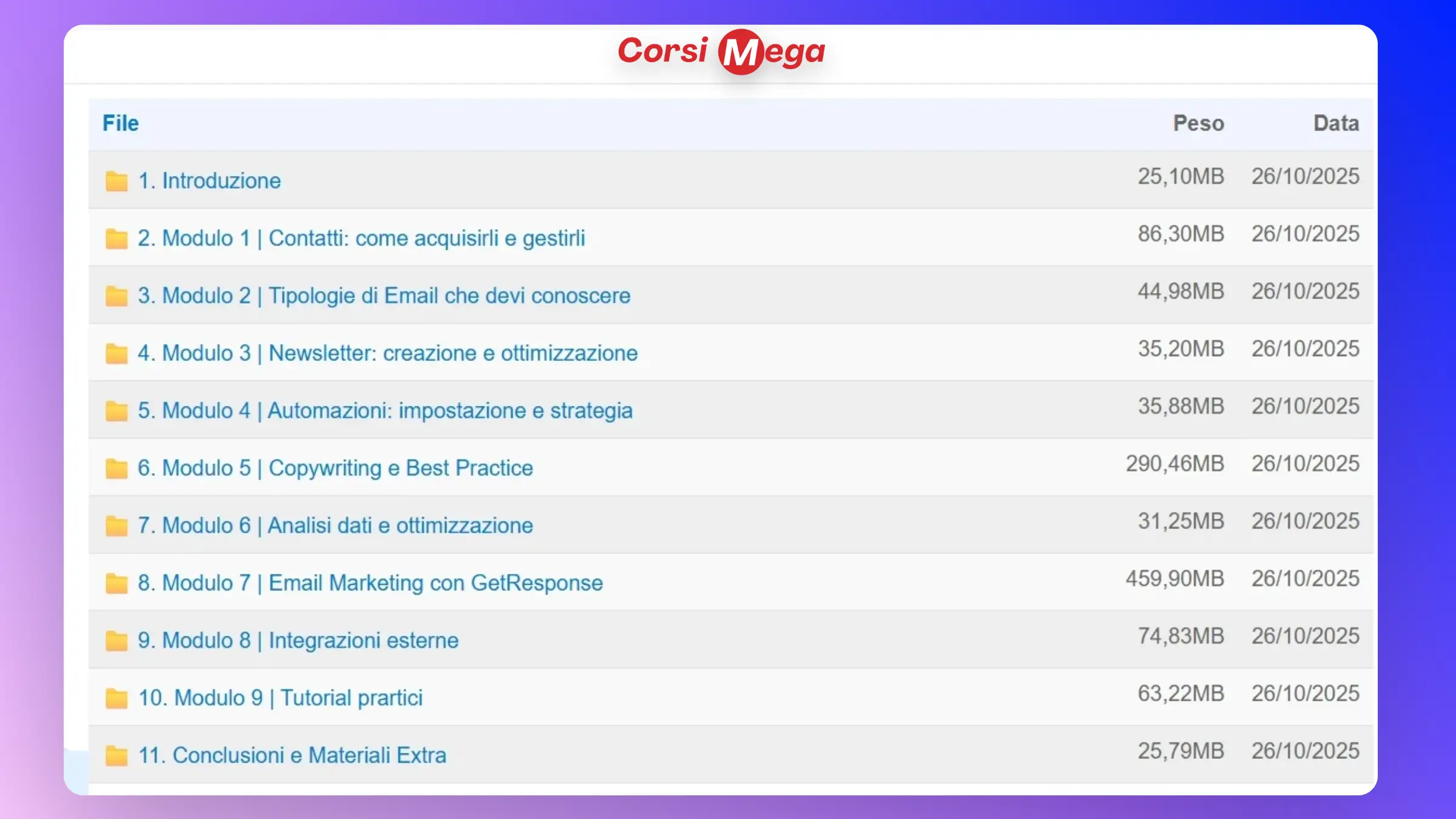 In questo corso sull’Email Marketing ti insegnamo a utilizzare le email in modo strategico per comunicare, fidelizzare e creare valore per la tua audience e perché no, anche a vendere. Imparerai a costruire una lista di contatti di qualità, scrivere email efficaci e impostare automazioni per ottimizzare il tuo tempo e migliorare le performance delle tue campagne.