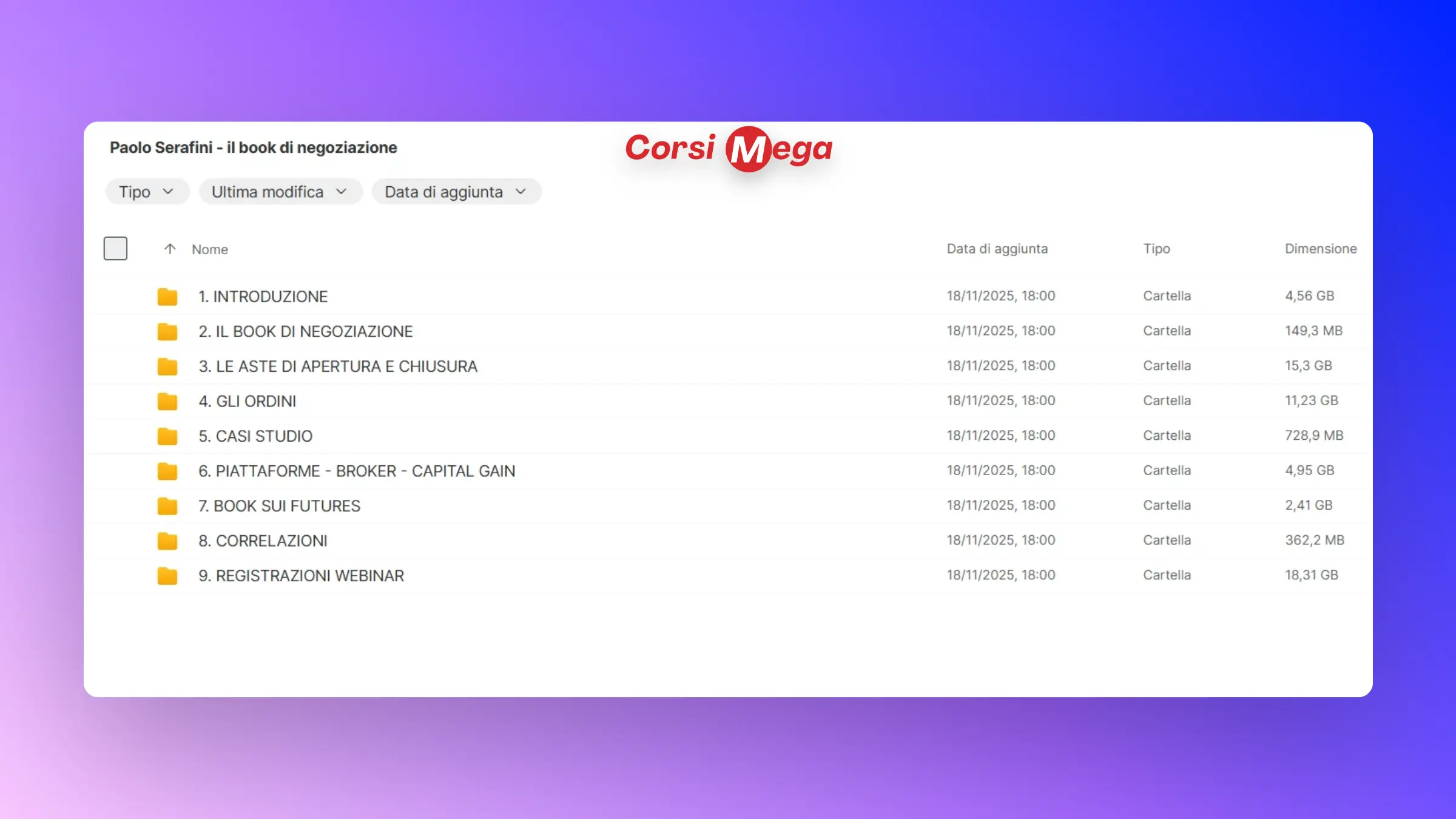 Conclusione Il Book di Negoziazione di Paolo Serafini è un corso indispensabile per chi vuole raggiungere l’eccellenza nel trading. Con lezioni dettagliate e un approccio pratico, questo corso ti fornirà le competenze necessarie per anticipare i movimenti del mercato, operare con sicurezza e trasformare il trading in una professione redditizia.