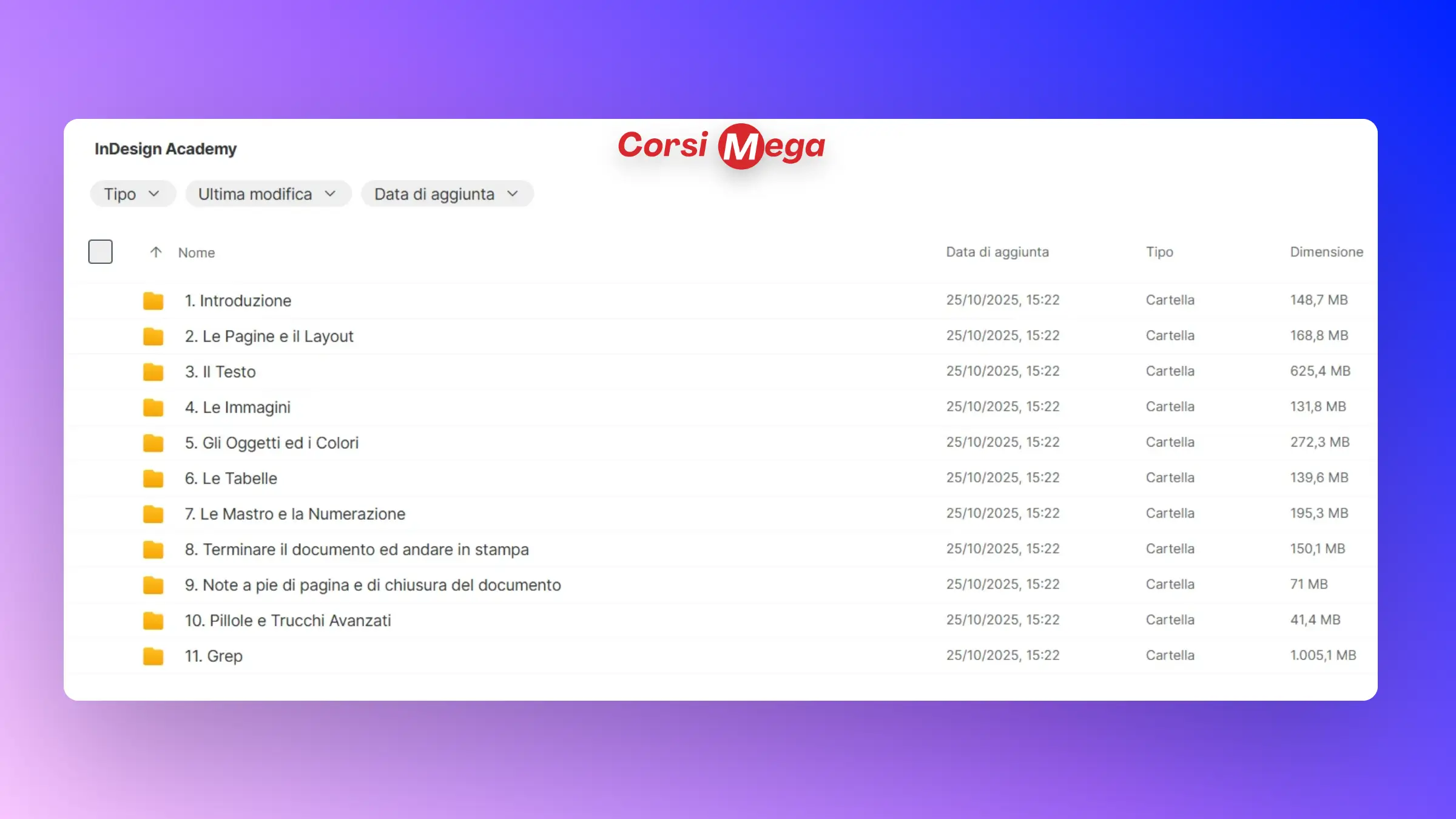 InDesign Academy è costituito da più di 140 lezioni per un totale di più di 13 ore video-lezioni. Si tratta del corso online su InDesign, in italiano, più completo che tu possa trovare.