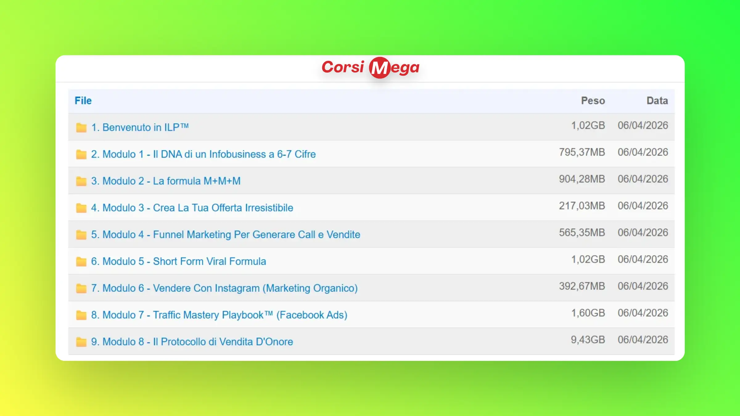 Acquistando questo prodotto otterrai accesso a tutti i video, file e contenuti digitali del corso 100% completi e aggiornati. Potrai scaricarli subito dopo il pagamento e consultarli offline sul tuo computer. Dai una sbirciata agli screenshot sopra per avere un’anteprima di quello che troverai all’interno del corso!