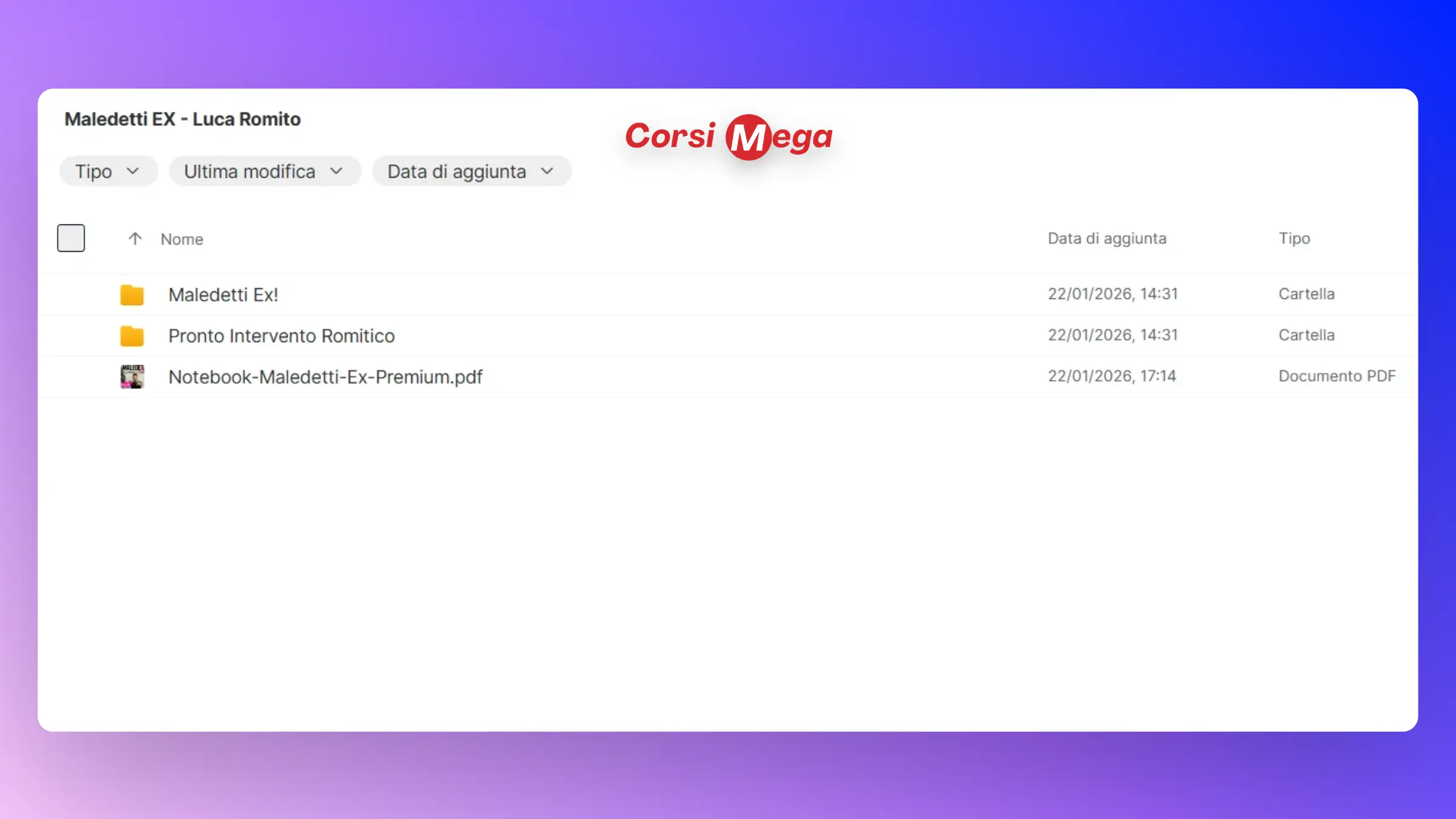NOTA: salvo dove specificato, non riceverai i materiali cartacei, l’accesso ai gruppi social, dirette live non registrate, licenze non condivisibili, consulenze o l’assistenza da parte dell’autore del corso. Per maggior informazioni ti invitiamo a consultare le FAQ o a contattarci direttamente.