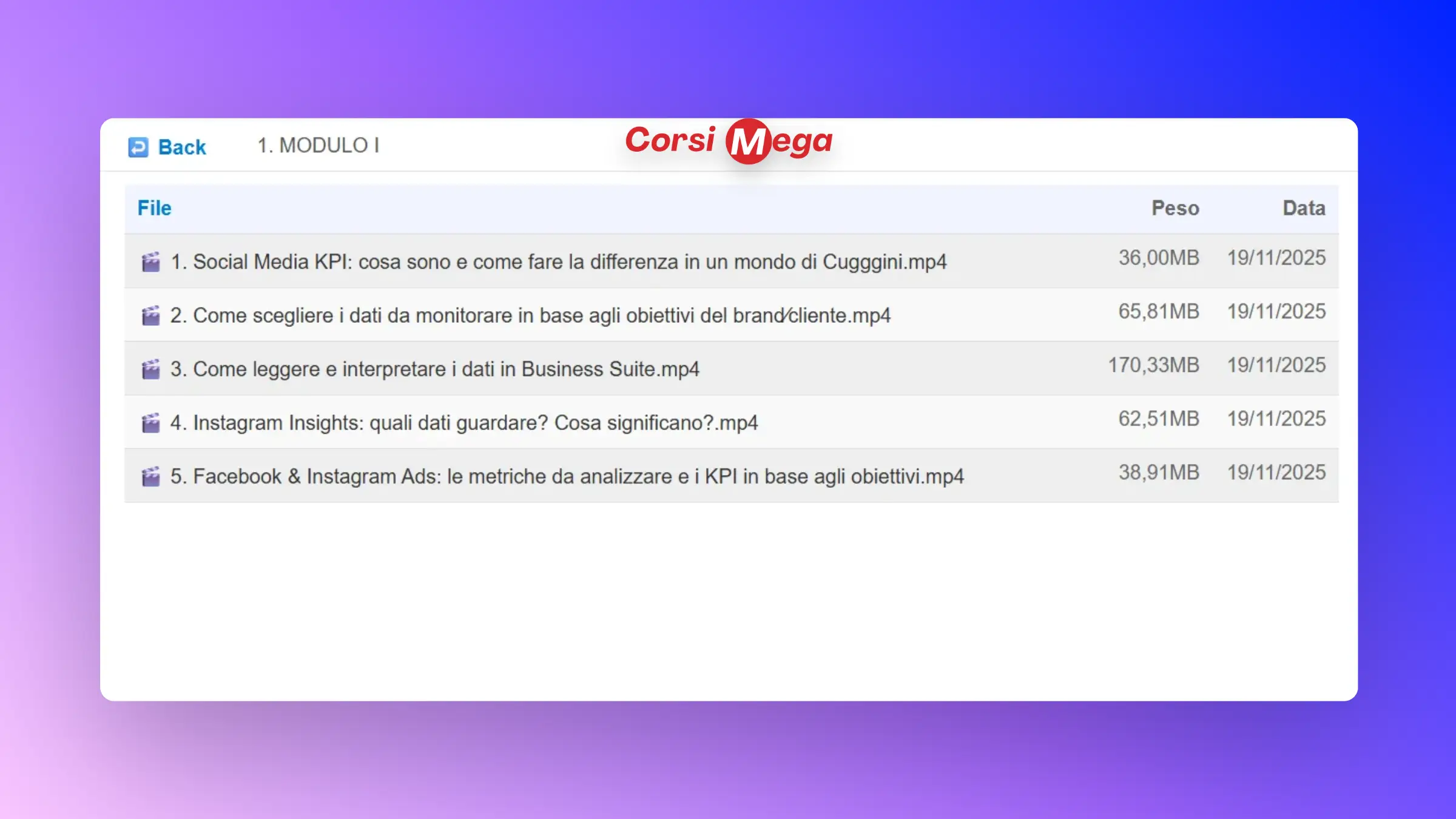 Impara a raccogliere, analizzare e interpretare i dati di Facebook, Instagram e Meta Ads per creare report chiari, strategici e professionali.