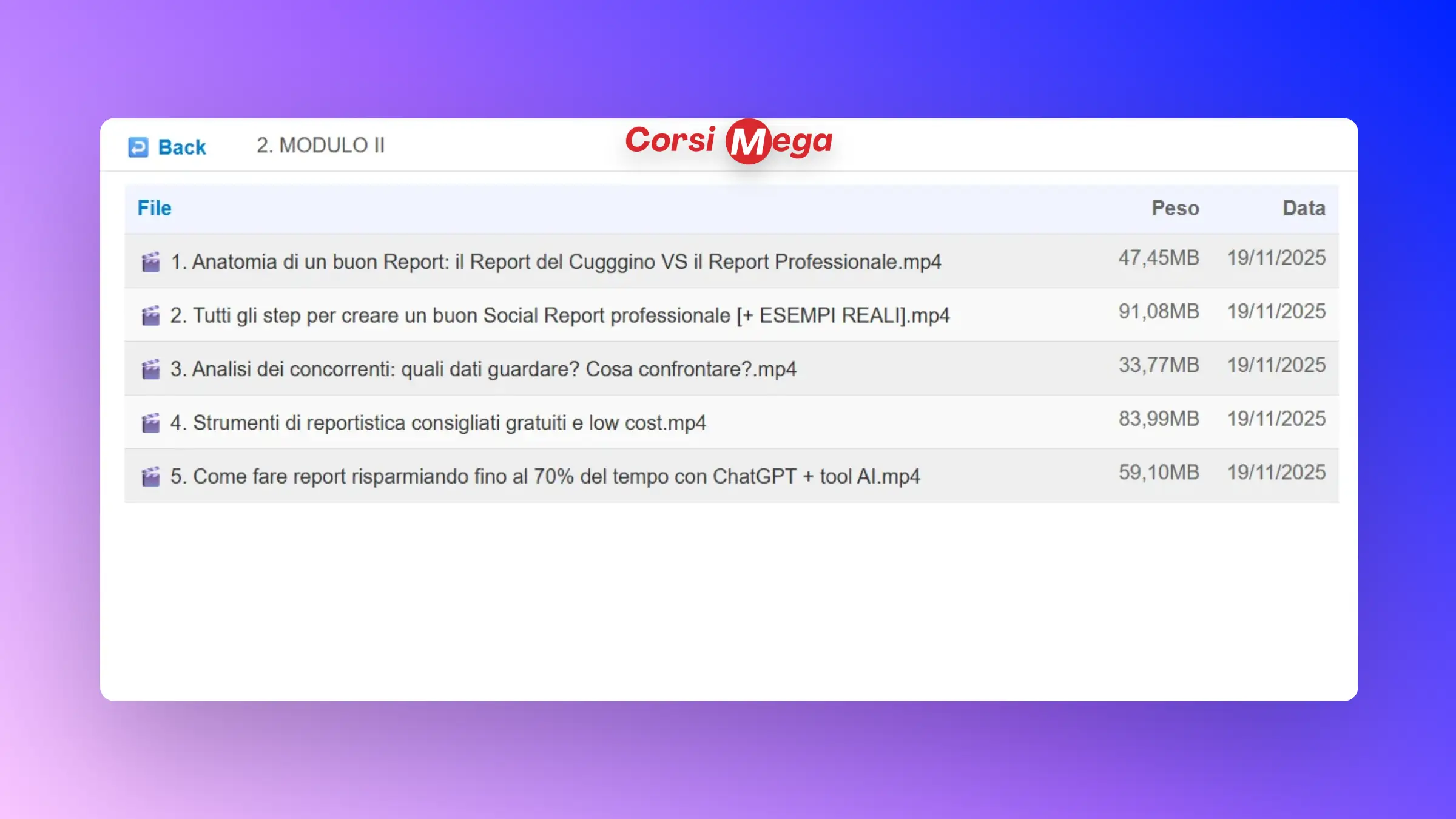 Acquistando questo prodotto otterrai accesso a tutti i video, file e contenuti digitali del corso 100% completi e aggiornati. Potrai scaricarli subito dopo il pagamento e consultarli offline sul tuo computer. Dai una sbirciata agli screenshot sopra per avere un’anteprima di quello che troverai all’interno del corso!