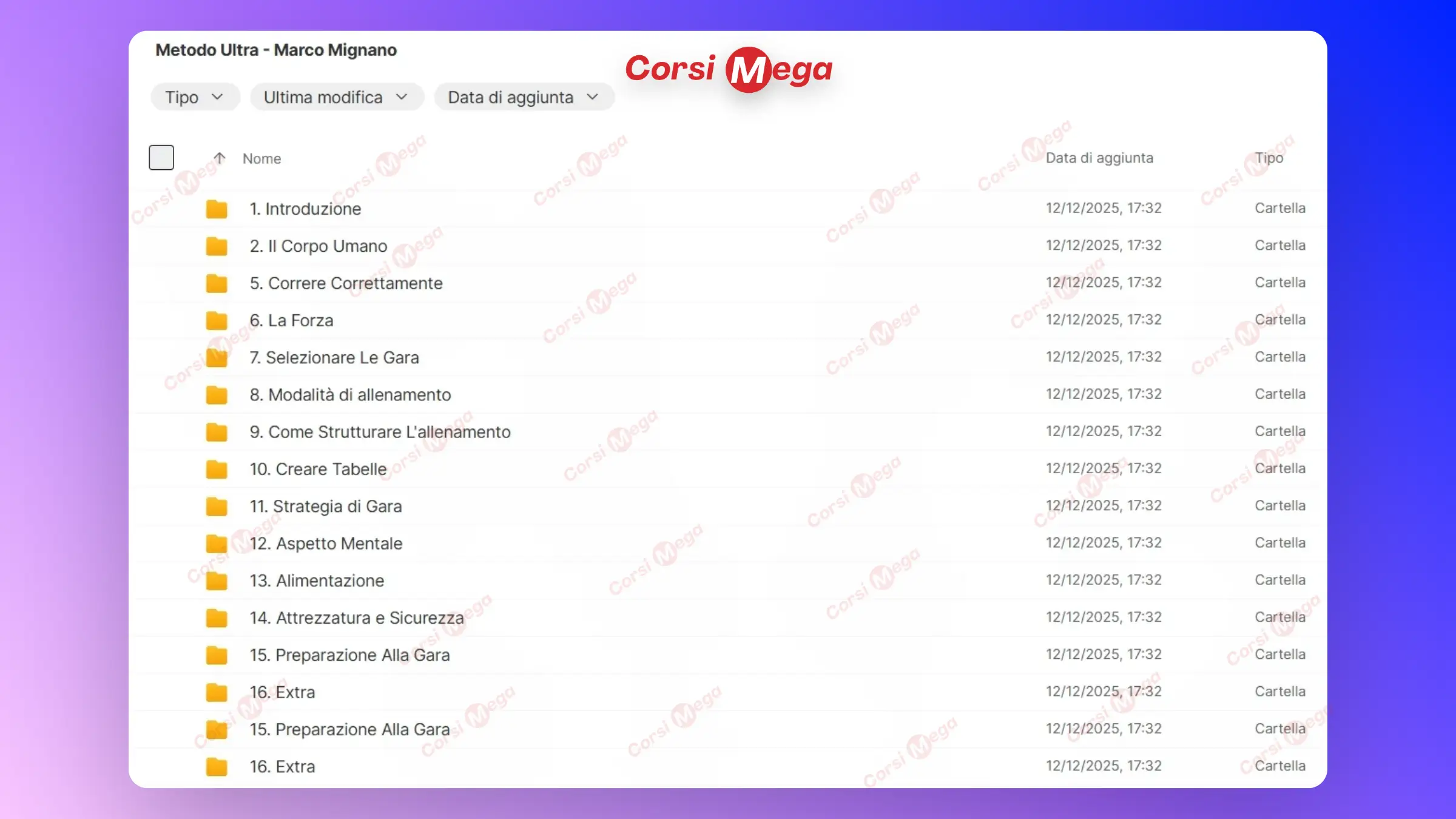 - Formazione – Oltre 90 video esclusivi. Il corso affronta tutta la formazione legata alle ultra distanze fornendoti tutti gli strumenti per diventare un ultra runner.