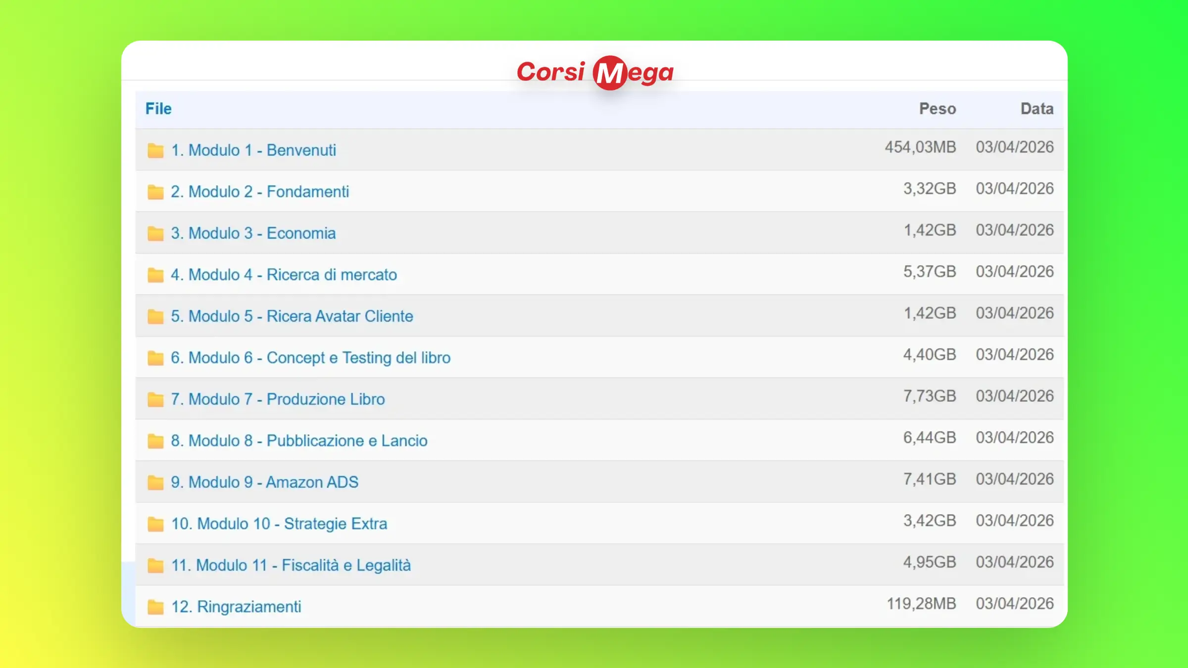 Acquistando questo prodotto otterrai accesso a tutti i video, file e contenuti digitali del corso 100% completi e aggiornati. Potrai scaricarli subito dopo il pagamento e consultarli offline sul tuo computer. Dai una sbirciata agli screenshot sopra per avere un’anteprima di quello che troverai all’interno del corso!