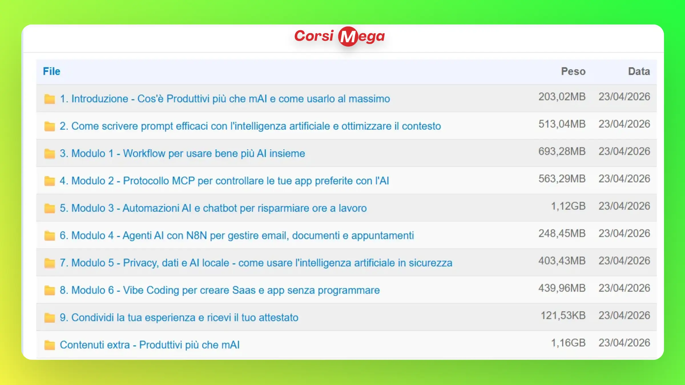 Acquistando questo prodotto otterrai accesso a tutti i video, file e contenuti digitali del corso 100% completi e aggiornati. Potrai scaricarli subito dopo il pagamento e consultarli offline sul tuo computer. Dai una sbirciata agli screenshot sopra per avere un’anteprima di quello che troverai all’interno del corso!