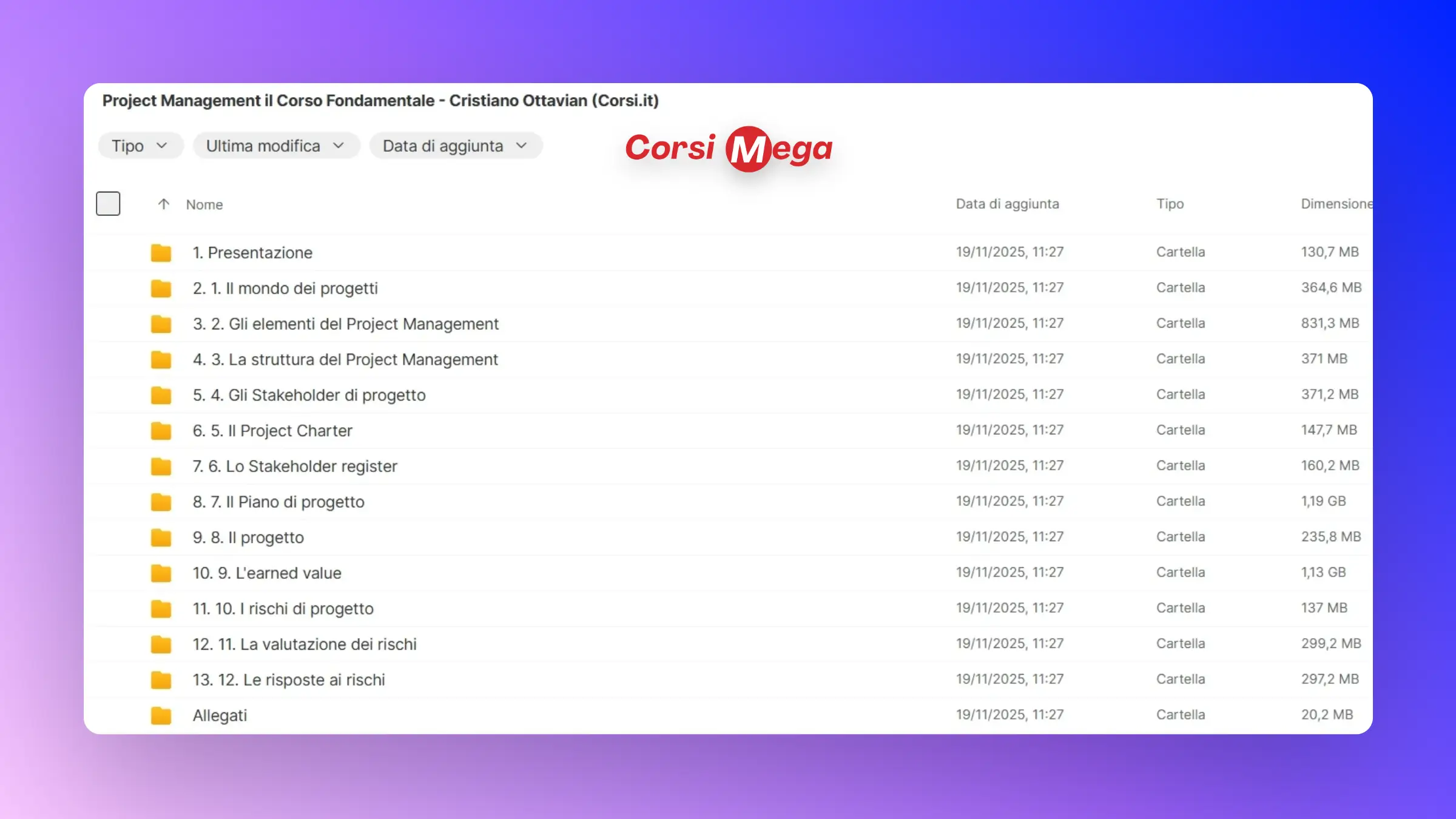 Impara la capacità di supervisionare tutti gli aspetti di un progetto, comprese le persone coinvolte, assicurandosi che venga completato nel rispetto dei vincoli di tempo, di budget e di qualità. Insegnato da un project manager certificato pmp e prince2, due tra i più noti riferimenti internazionali di project management.