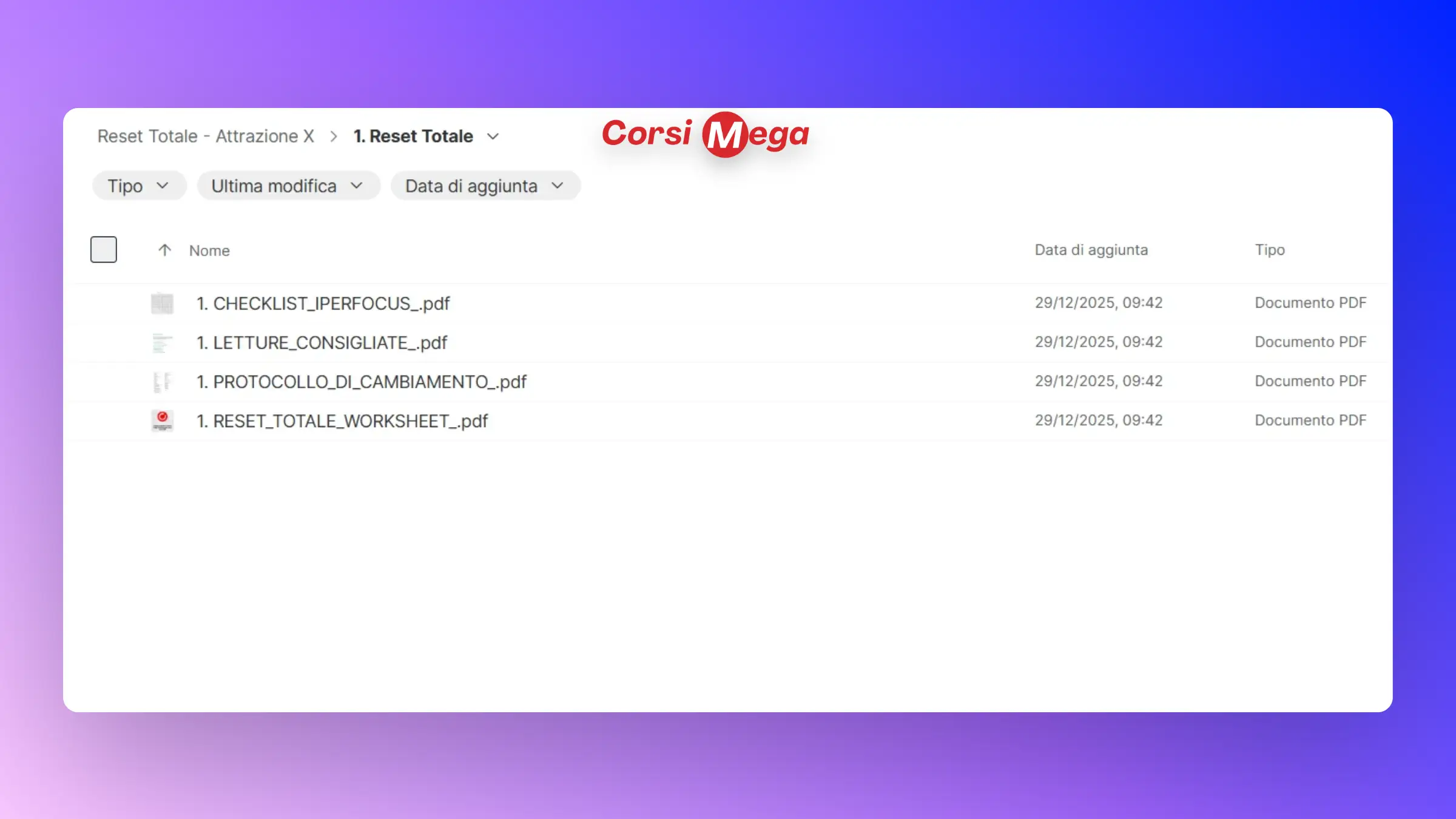 Non aspettare un altro anno per fare la differenza nella tua vita. Con Reset Totale, avrai tutti gli strumenti per trasformare il 2025 nell’anno migliore di sempre.