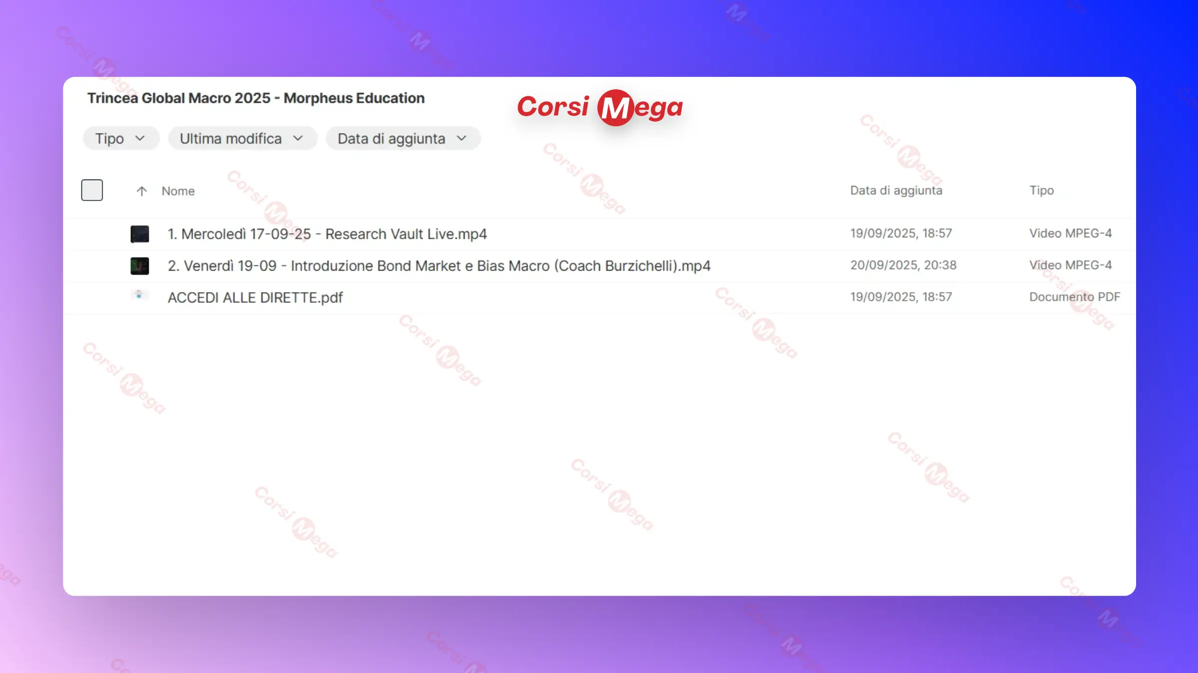 Acquistando questo prodotto otterrai accesso a tutti i video, file e contenuti digitali del corso 100% completi e aggiornati. Potrai scaricarli subito dopo il pagamento e consultarli offline sul tuo computer. Dai una sbirciata agli screenshot sopra per avere un’anteprima di quello che troverai all’interno del corso!
